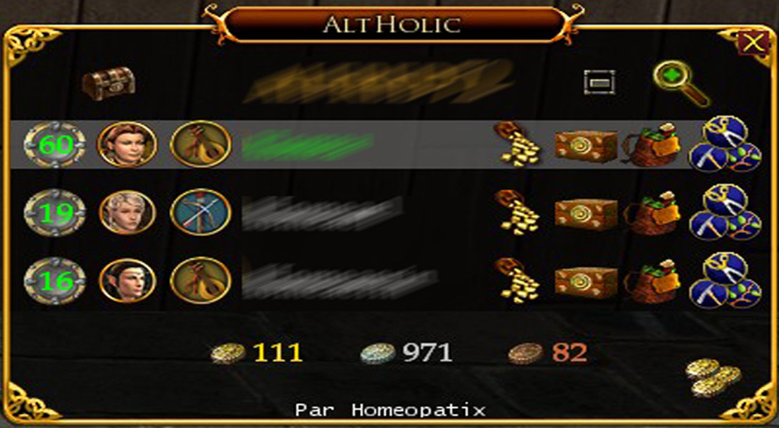 AltHolic est un petit plugin pour avoir une vision rapide de vos alts (autre personnage) pour le jeu video